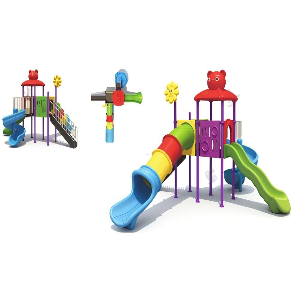 This deluxe MYTS playground set is designed for kids to enjoy endless hours of safe play. With dimensions of 510*535*325 cm, it provides spacious activity zones including climbing, sliding, and imaginative play. It is bright, attractive design that keeps children engaged, while also being a centerpiece for any playground or backyard. This playset is engineered for long-lasting outdoor fun and encourages active play, teamwork, and balance. Children will benefit as it perfect for schools, nurseries, or spacious gardens, and parents love that it is parents can relax knowing it is built with safety standards. Please note There can be slight change of color or design from what is shown in picture .A wonderful choice to create joyful childhood experiences.