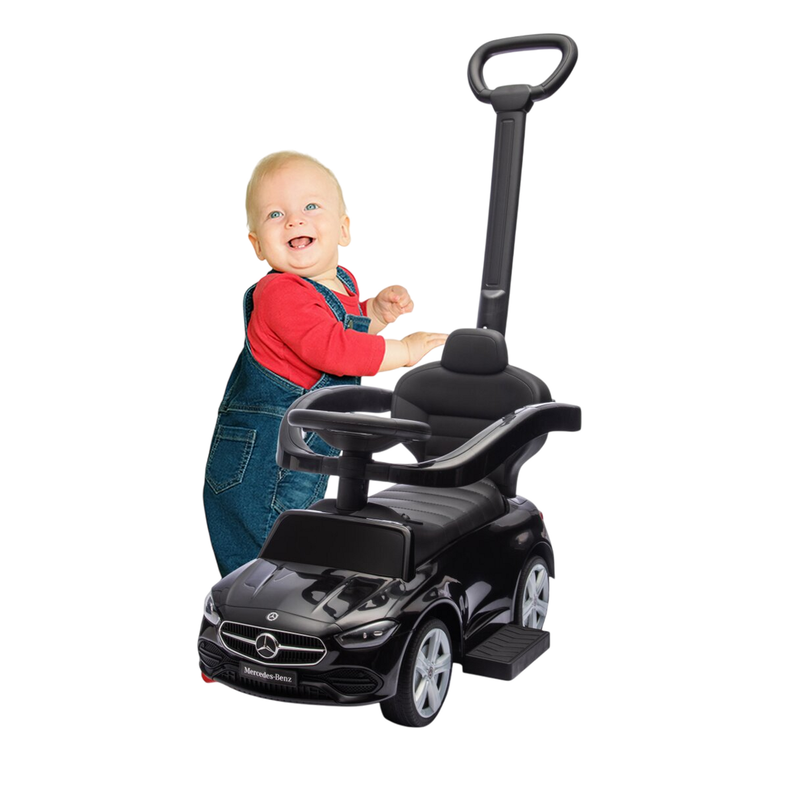 Give your little one the luxury experience with the MYTS Mercedes-Benz C-Class Ride-On Push Car. Officially licensed and designed for comfort and control, it features a parental push handle, safety bracket, supportive backrest, and footrest for secure riding. The musical steering wheel keeps kids entertained, while the hidden under-seat storage provides space for small toys. Perfect for both indoor and outdoor fun, this push car combines safety, entertainment, and premium Mercedes styling for toddlers’ first adventures.