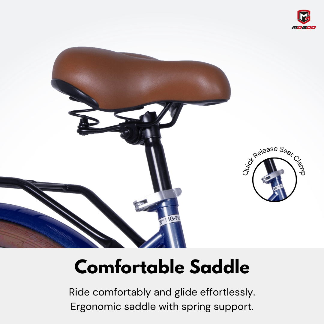 Turn sidewalks into runways with Mogoo Florida. The design places the seat a little farther back and with a lower center of gravity. That results in a more upright riding position with full leg extension This more upright riding position with raised handlebars eliminates wrist, arm, neck, and leg fatigue. You won’t believe the difference in how comfortable you feel while you ride!