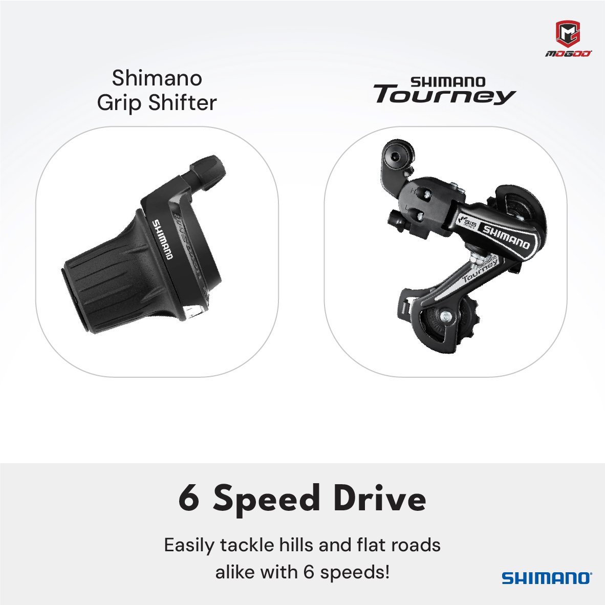 The Mogoo Hauler Adult Tricycle combines style, functionality, and durability, making it perfect for errands, shopping, or leisurely rides. Available in 24/26-inch options, this tricycle features a reliable 6-speed Shimano gear system for smooth and adaptable rides.