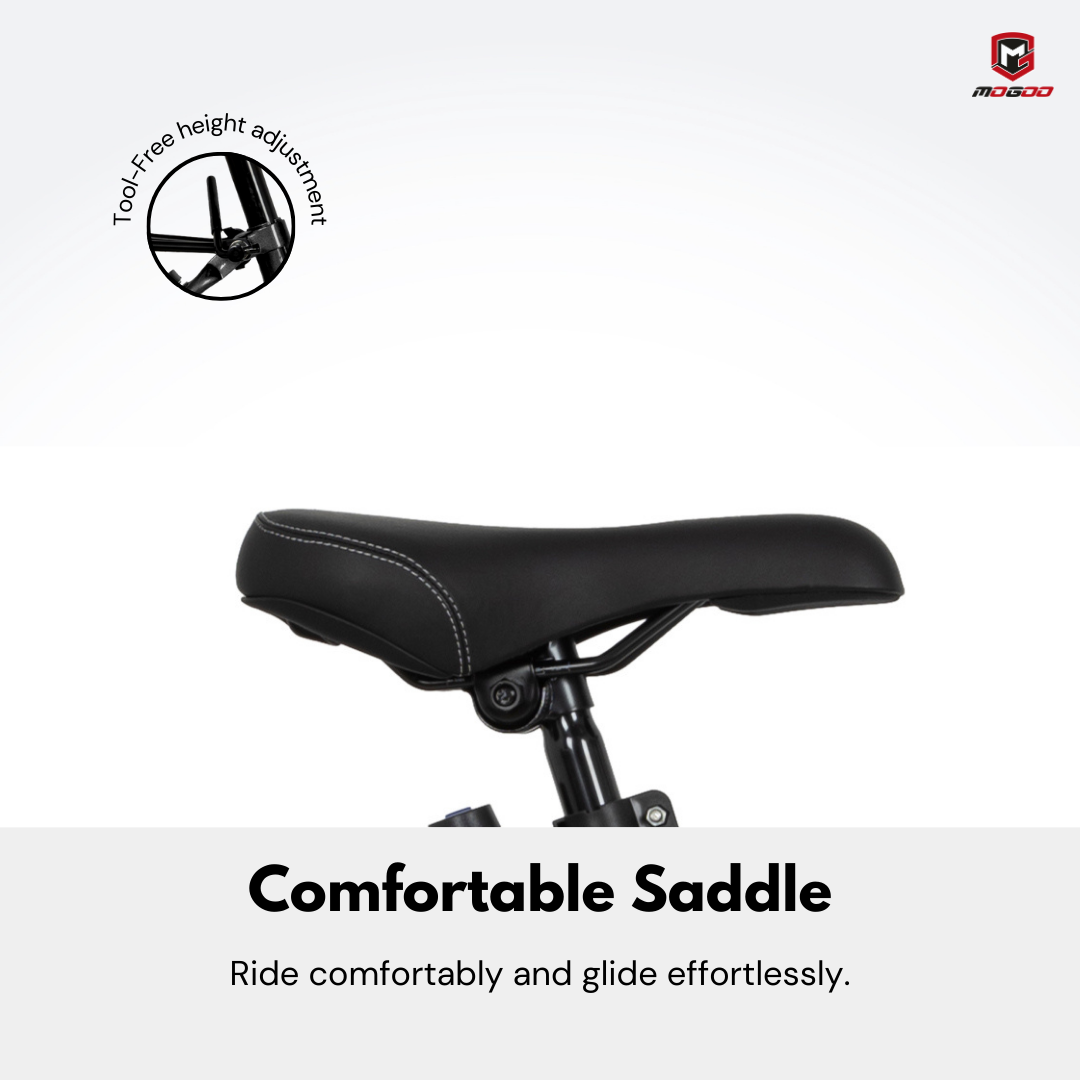Turn sidewalks into runways with this sweet, playful design. The unique folding frame makes this choice extremely versatile as it can easily fit in small places while also being ready for those spontaneous adventures. The design places the seat a little farther back and with a lower center of gravity. That results in a more upright riding position with full leg extension This more upright riding position with raised handlebars eliminates wrist, arm, neck, and leg fatigue. You won’t believe the difference in how comfortable you feel while you ride!