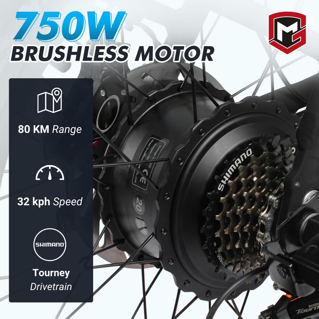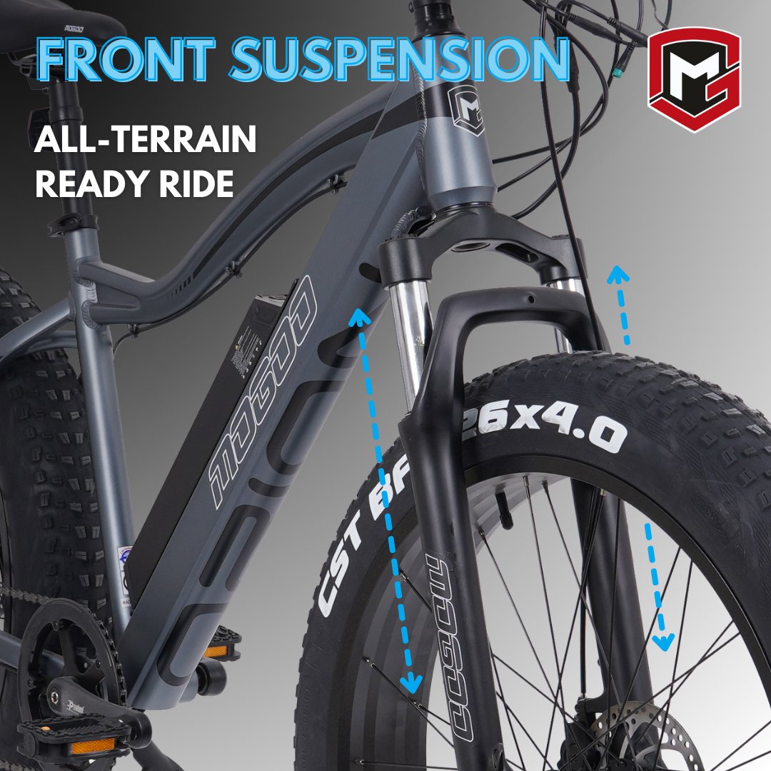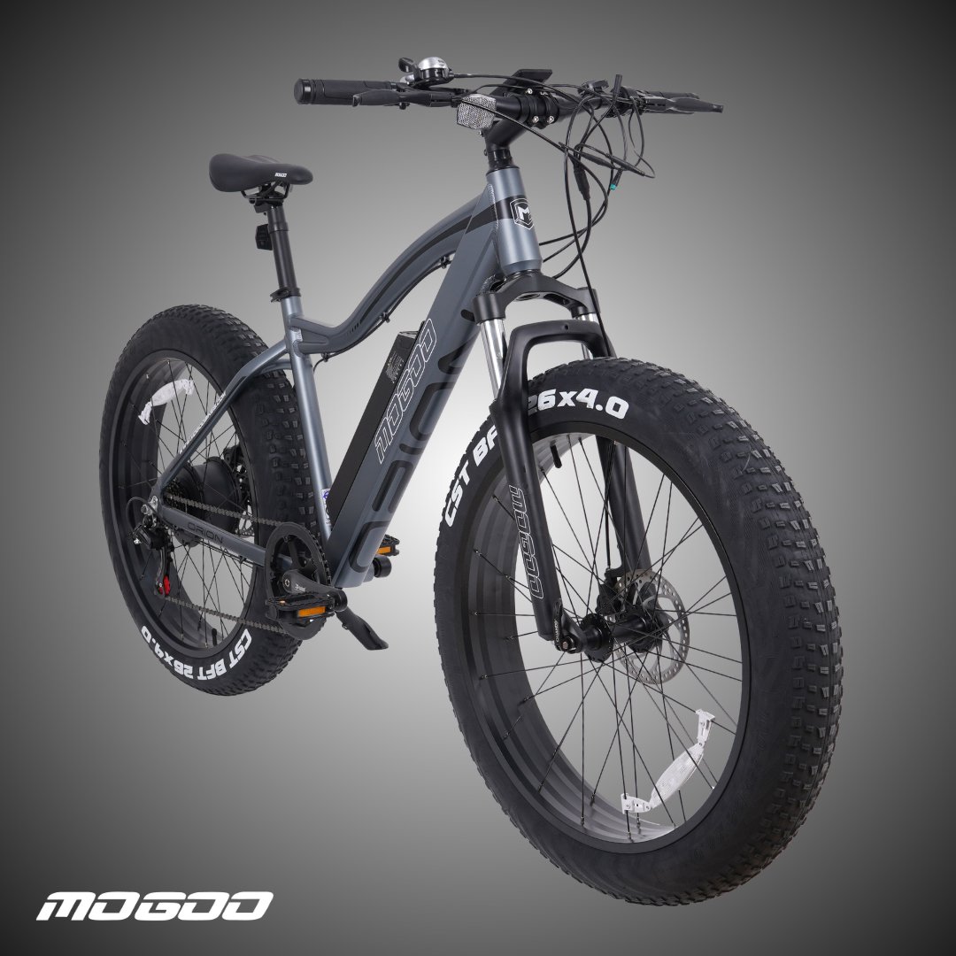 Meet the Mogoo Orion Fat Tire E Mountain Bike – your ultimate companion for high-performance adventures. With a powerful 750W motor, conquer diverse terrains at speeds up to 32 kph. The CST BFT 4.0 fat tires ensure stability on rocky, sandy, or snowy landscapes. A lightweight alloy frame, 48V/15AH removable battery, Shimano 7-speed drivetrain, versatile riding modes, and LCD display combine for a thrilling and customizable riding experience. With a load capacity of 330 lbs and superior stopping power from mechanical disc brakes, this e-bike guarantees a safe and exhilarating journey on any trail.