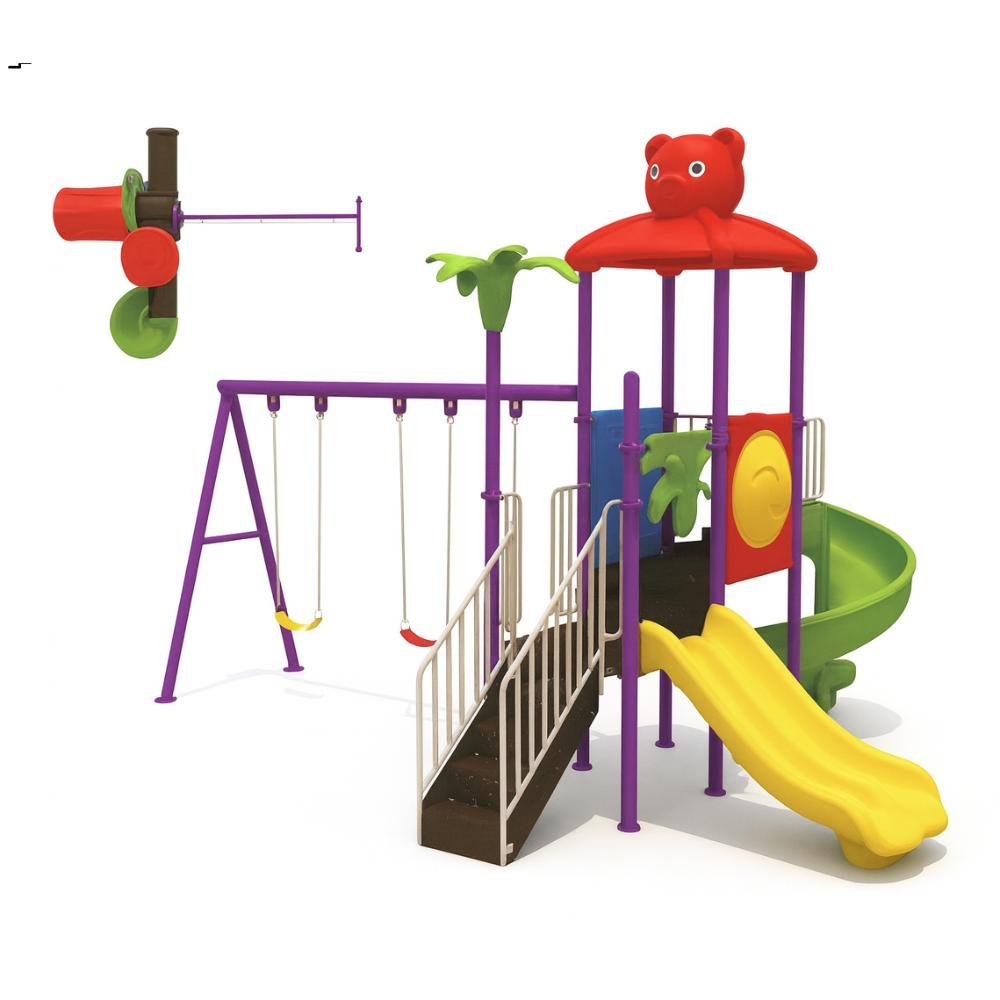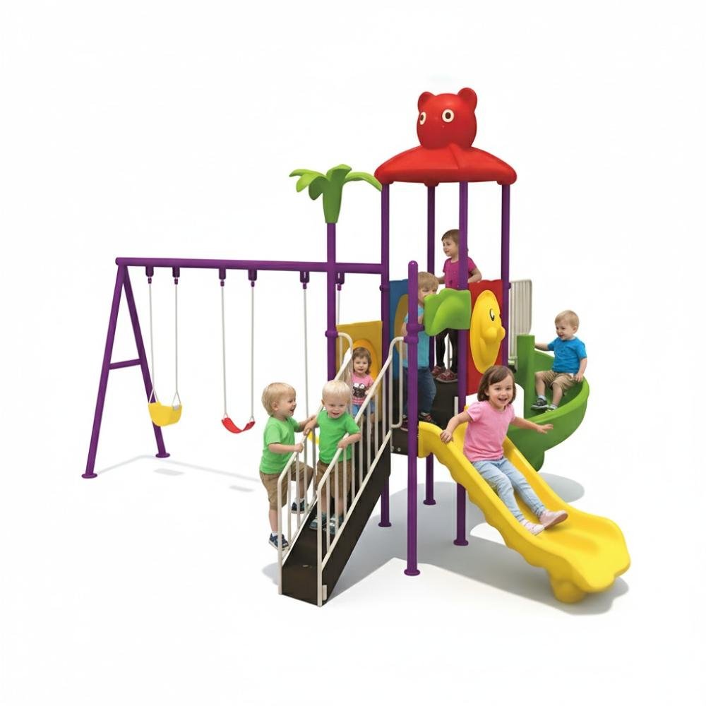 This exciting MYTS playground set is designed for kids to enjoy endless hours of safe play. With dimensions of 535*430*350 cm, it provides spacious activity zones including climbing, sliding, and imaginative play. It is helps children develop motor skills while having fun, while also being designed to inspire imaginative roleplay and creativity. This playset is crafted with child safety as the top priority and encourages active play, teamwork, and balance. Children will benefit as it perfect for schools, nurseries, or spacious gardens, and parents love that it is parents can relax knowing it is built with safety standards. Please note There can be slight change of color or design from what is shown in picture .A wonderful choice to create joyful childhood experiences.