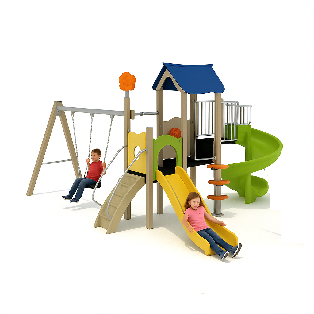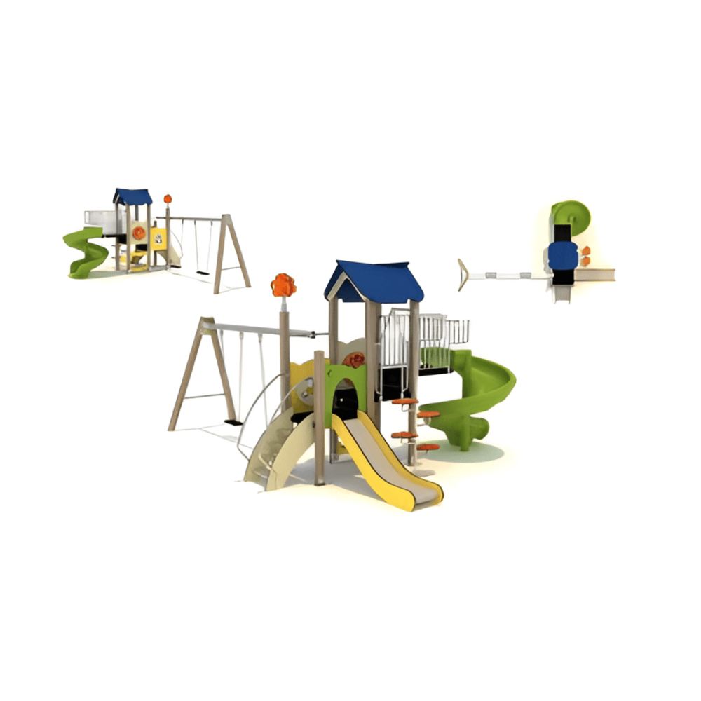 This deluxe MYTS playground set is designed for kids to enjoy endless hours of safe play. With dimensions of 620*610*440 cm, it provides spacious activity zones including climbing, sliding, and imaginative play. It is a centerpiece for any playground or backyard, while also being encourages active play, teamwork, and balance. This playset is perfect for schools, nurseries, or spacious gardens and engineered for long-lasting outdoor fun. Children will benefit as it crafted with child safety as the top priority, and parents love that it is bright, attractive design that keeps children engaged. Please note There can be slight change of color or design from what is shown in picture. A wonderful choice to create joyful childhood experiences.