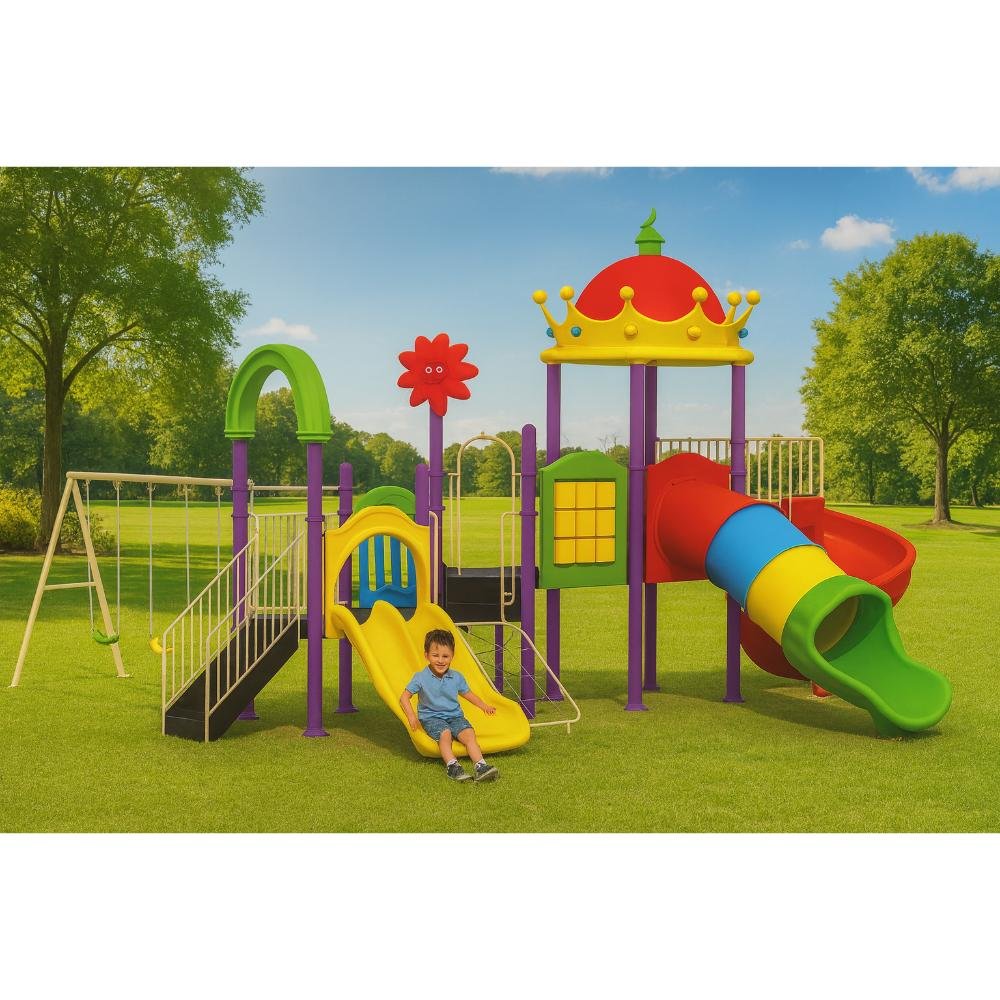 This high-quality MYTS playground set is designed for kids to enjoy endless hours of safe play. With dimensions of 750*700*455 cm, it provides spacious activity zones including climbing, sliding, and imaginative play. It is helps children develop motor skills while having fun, while also being engineered for long-lasting outdoor fun. This playset is perfect for schools, nurseries, or spacious gardens and crafted with child safety as the top priority. Children will benefit as it a centerpiece for any playground or backyard, and parents love that it is encourages active play, teamwork, and balance. Please note There can be slight change of color or design from what is shown in picture . A wonderful choice to create joyful childhood experiences.