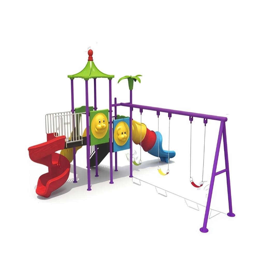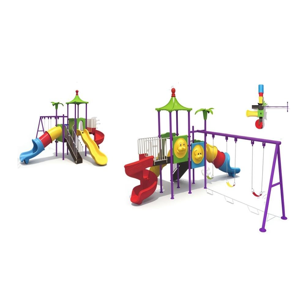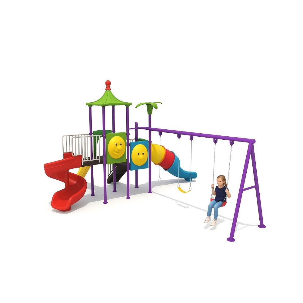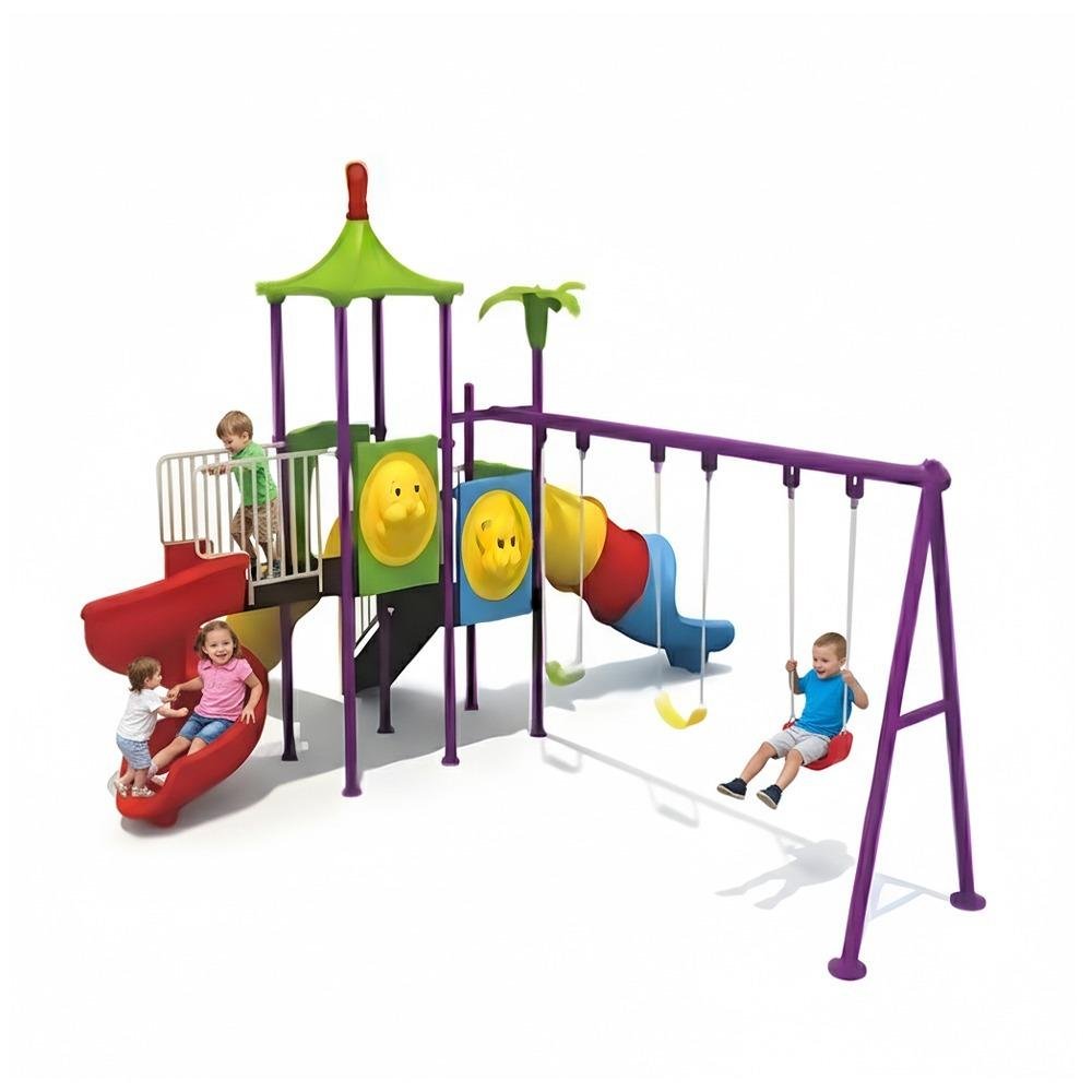 This deluxe MYTS playground set is designed for kids to enjoy endless hours of safe play. With dimensions of 585*560*350 cm, it provides spacious activity zones including climbing, sliding, and imaginative play. It is encourages active play, teamwork, and balance, while also being built from durable materials that withstand tough weather. This playset is perfect for schools, nurseries, or spacious gardens and helps children develop motor skills while having fun. Children will benefit as it a centerpiece for any playground or backyard, and parents love that it is parents can relax knowing it is built with safety standards. Please note There can be slight change of color or design from what is shown in picture .A wonderful choice to create joyful childhood experiences.