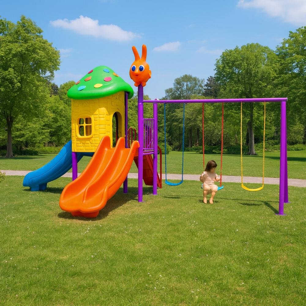 This exciting MYTS playground set is designed for kids to enjoy endless hours of safe play. With dimensions of 620*310*260 cm, it provides spacious activity zones including climbing, sliding, and imaginative play. It is encourages active play, teamwork, and balance, while also being a centerpiece for any playground or backyard. This playset is built from durable materials that withstand tough weather and crafted with child safety as the top priority. Children will benefit as it bright, attractive design that keeps children engaged, and parents love that it is perfect for schools, nurseries, or spacious gardens. Please note There can be slight change of color or design from what is shown in picture .A wonderful choice to create joyful childhood experiences.
