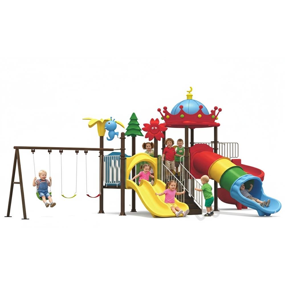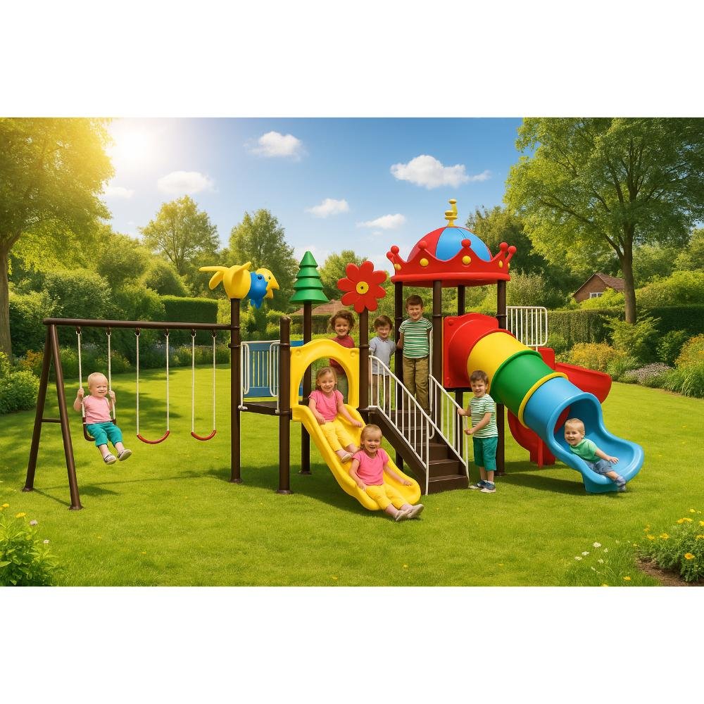 This deluxe MYTS playground set is designed for kids to enjoy endless hours of safe play. With dimensions of 885*485*430 cm, it provides spacious activity zones including climbing, sliding, and imaginative play. It is designed to inspire imaginative roleplay and creativity, while also being engineered for long-lasting outdoor fun. This playset is helps children develop motor skills while having fun and perfect for schools, nurseries, or spacious gardens. Children will benefit as it a centerpiece for any playground or backyard, and parents love that it is crafted with child safety as the top priority. Please note There can be slight change of color or design from what is shown in picture. A wonderful choice to create joyful childhood experiences.
