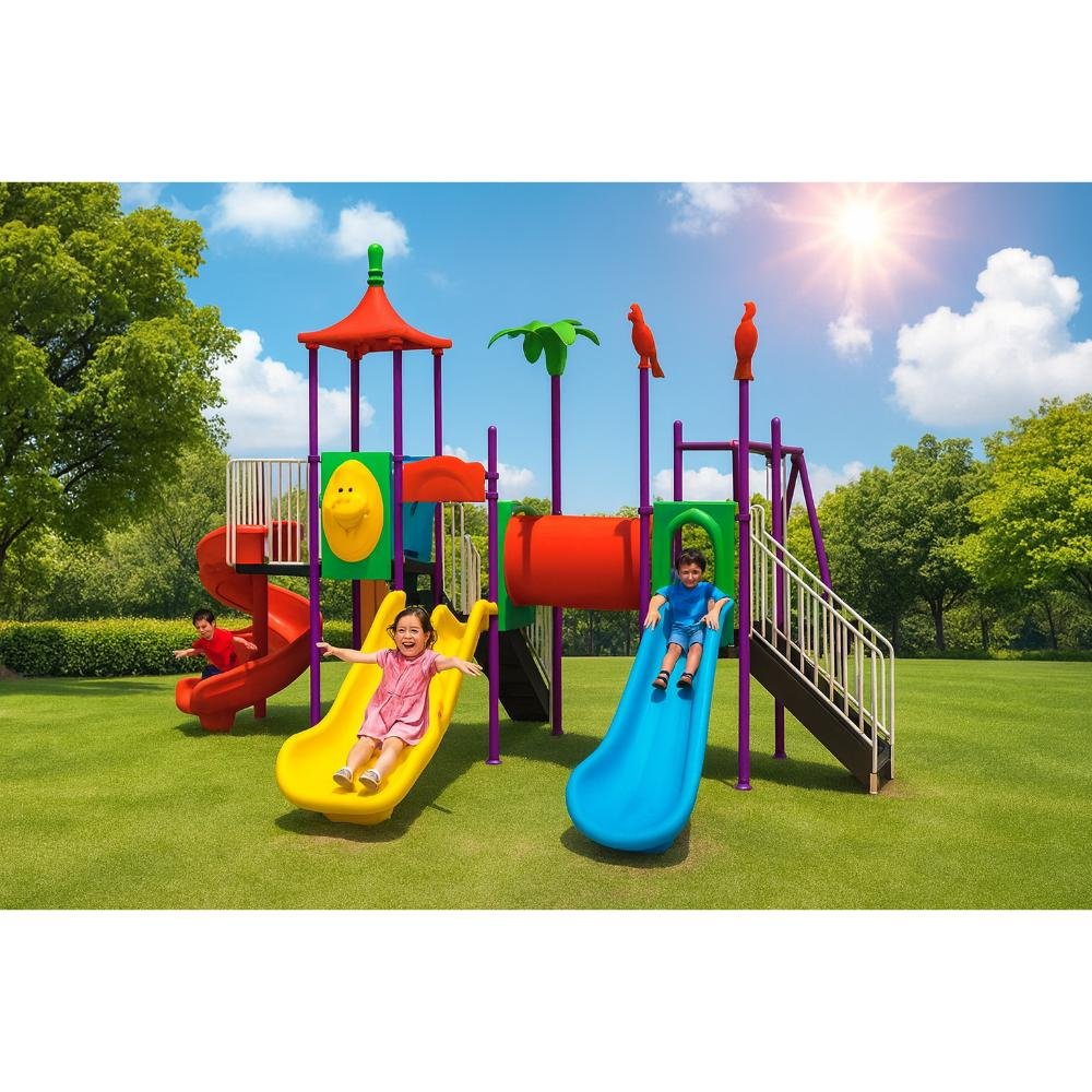 This deluxe MYTS playground set is designed for kids to enjoy endless hours of safe play. With dimensions of 625*640*350 cm, it provides spacious activity zones including climbing, sliding, and imaginative play. It is encourages active play, teamwork, and balance, while also being crafted with child safety as the top priority. This playset is helps children develop motor skills while having fun and a centerpiece for any playground or backyard. Children will benefit as it parents can relax knowing it is built with safety standards, and parents love that it is bright, attractive design that keeps children engaged. Please note There can be slight change of color or design from what is shown in picture . A wonderful choice to create joyful childhood experiences.
