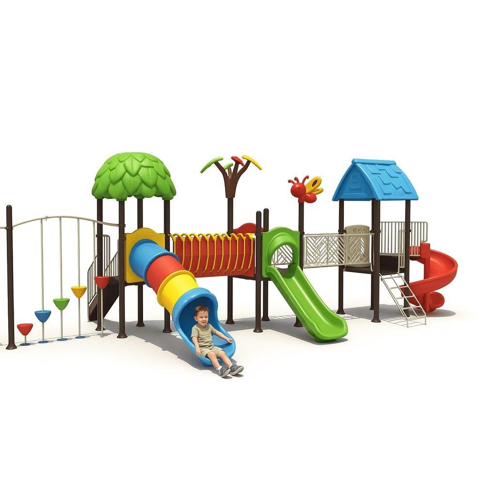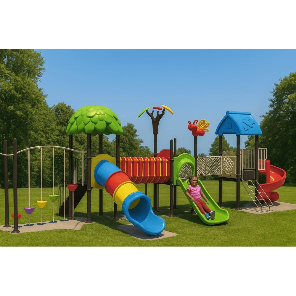 This deluxe MYTS playground set is designed for kids to enjoy endless hours of safe play. With dimensions of 1305*535*410 cm, it provides spacious activity zones including climbing, sliding, and imaginative play. It is parents can relax knowing it is built with safety standards, while also being engineered for long-lasting outdoor fun. This playset is built from durable materials that withstand tough weather and perfect for schools, nurseries, or spacious gardens. Children will benefit as it designed to inspire imaginative roleplay and creativity, and parents love that it is helps children develop motor skills while having fun. Please note There can be slight change of color or design from what is shown in picture. A wonderful choice to create joyful childhood experiences.