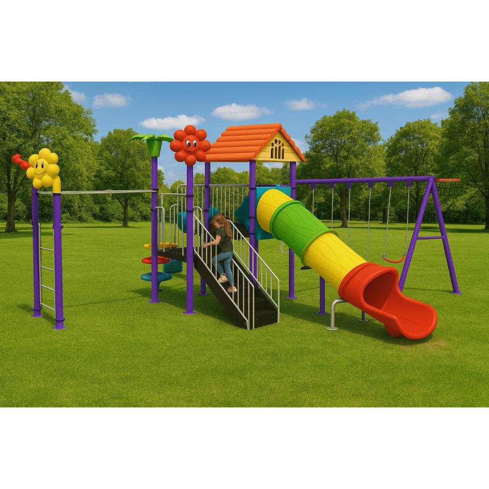 This exciting MYTS playground set is designed for kids to enjoy endless hours of safe play. With dimensions of 750*538*305 cm, it provides spacious activity zones including climbing, sliding, and imaginative play. It is a centerpiece for any playground or backyard, while also being built from durable materials that withstand tough weather. This playset is engineered for long-lasting outdoor fun and bright, attractive design that keeps children engaged. Children will benefit as it parents can relax knowing it is built with safety standards, and parents love that it is designed to inspire imaginative roleplay and creativity. Please note There can be slight change of color or design from what is shown in picture .A wonderful choice to create joyful childhood experiences.