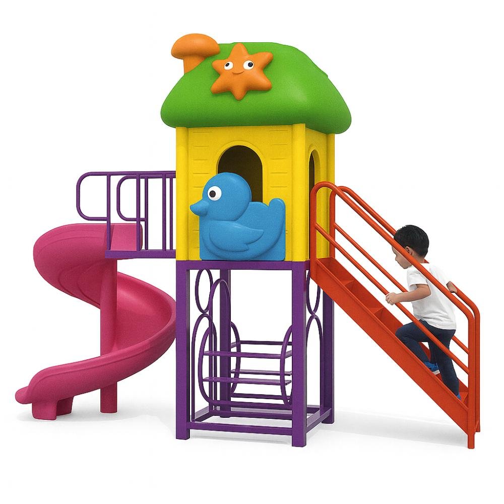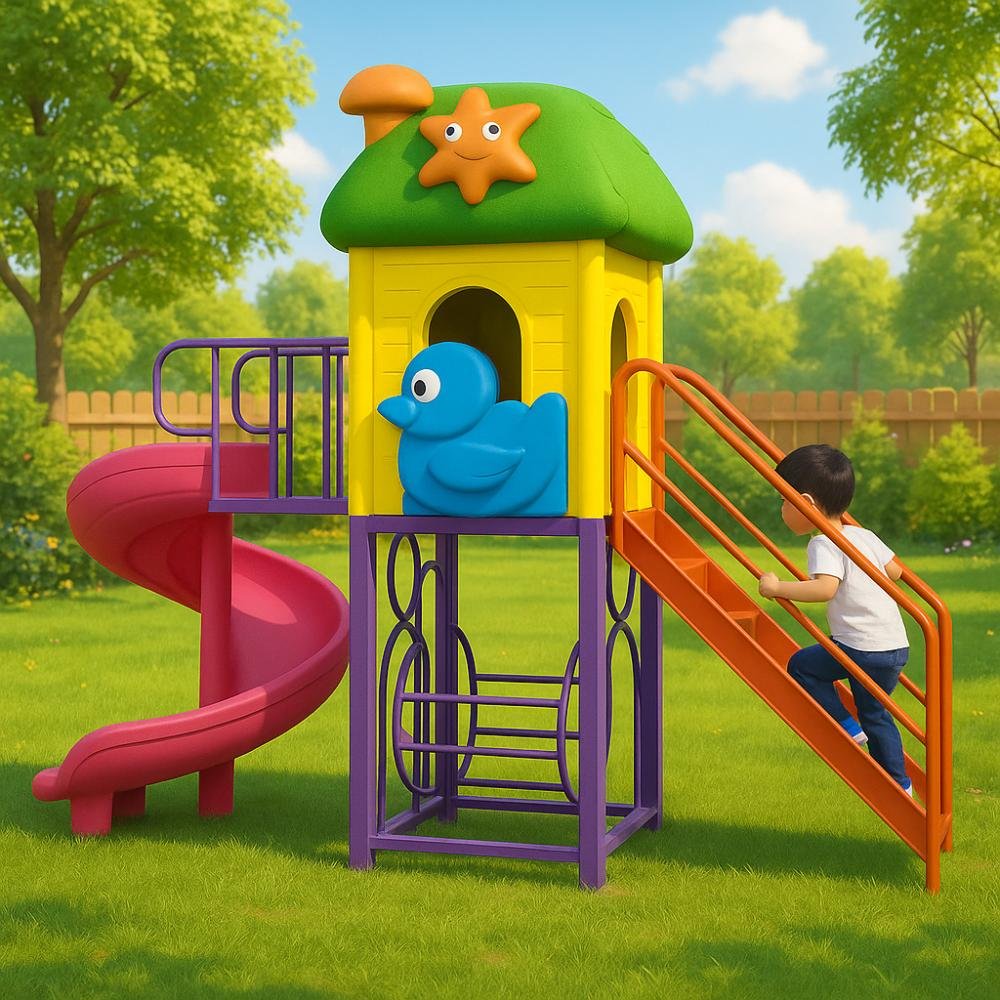 This high-quality MYTS playground set is designed for kids to enjoy endless hours of safe play. With dimensions of 330*80*260 cm, it provides spacious activity zones including climbing, sliding, and imaginative play. It is perfect for schools, nurseries, or spacious gardens, while also being a centerpiece for any playground or backyard. This playset is encourages active play, teamwork, and balance and engineered for long-lasting outdoor fun. Children will benefit as it built from durable materials that withstand tough weather, and parents love that it is designed to inspire imaginative roleplay and creativity. Please note There can be slight change of color or design from what is shown in picture .A wonderful choice to create joyful childhood experiences.