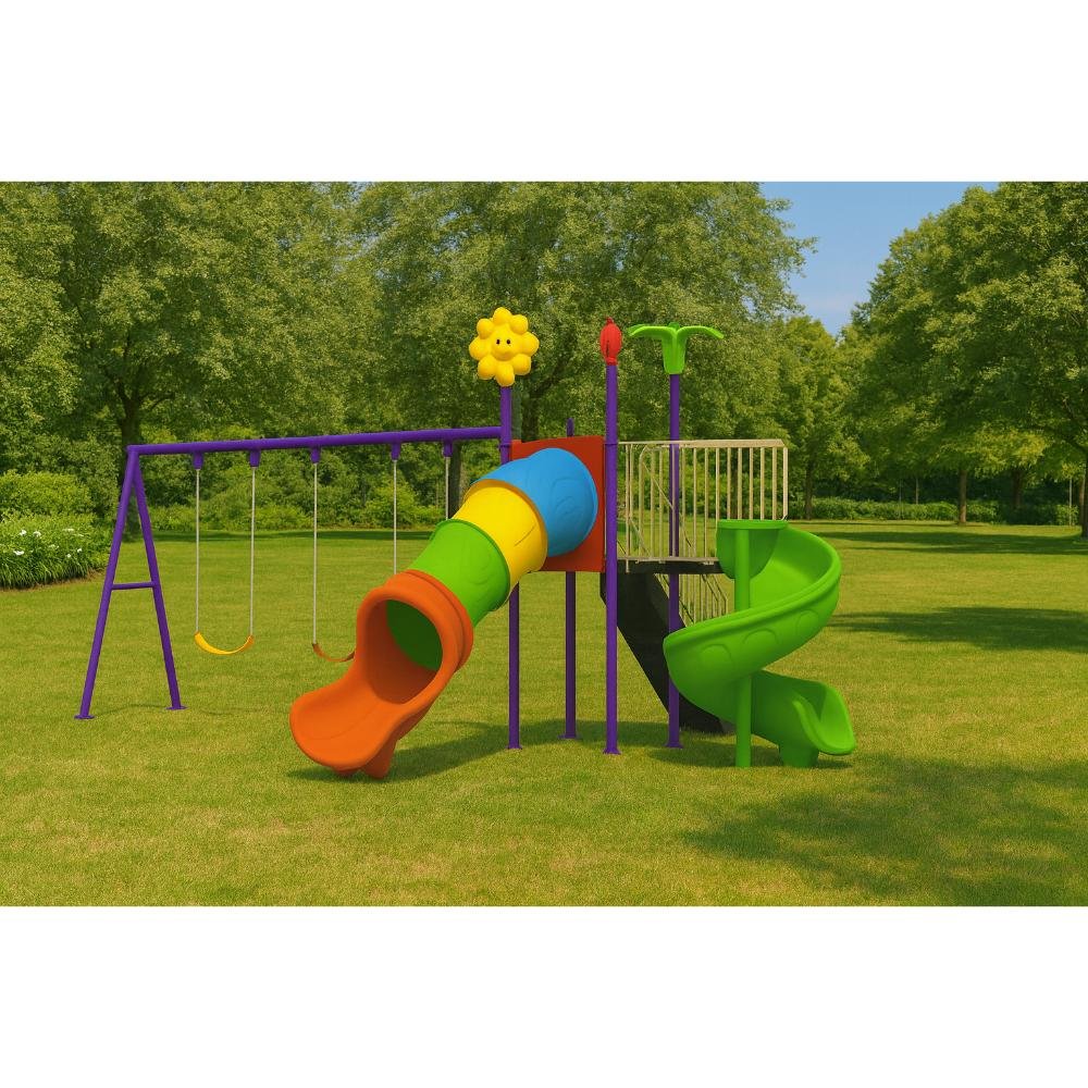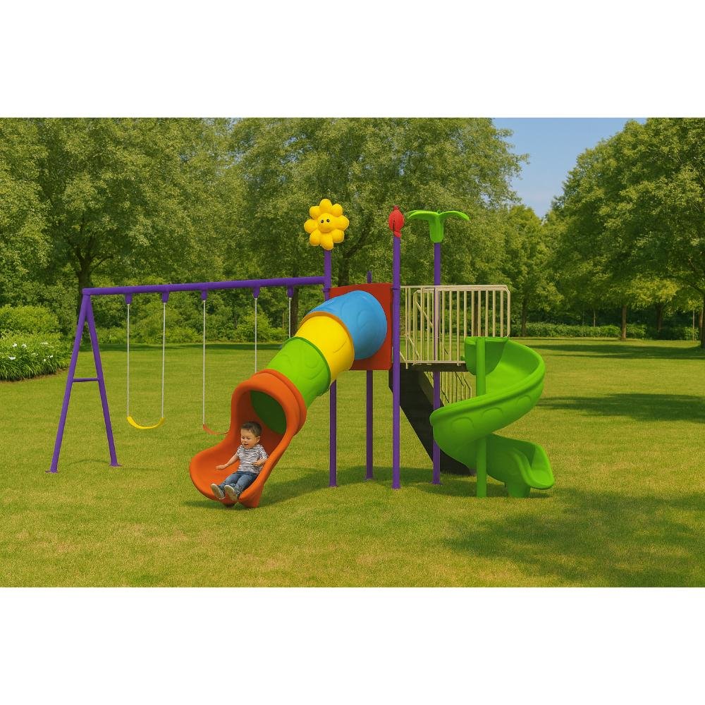 This premium MYTS playground set is designed for kids to enjoy endless hours of safe play. With dimensions of 545*525*295 cm, it provides spacious activity zones including climbing, sliding, and imaginative play. It is a centerpiece for any playground or backyard, while also being bright, attractive design that keeps children engaged. This playset is parents can relax knowing it is built with safety standards and engineered for long-lasting outdoor fun. Children will benefit as it helps children develop motor skills while having fun, and parents love that it is designed to inspire imaginative roleplay and creativity. Please note There can be slight change of color or design from what is shown in picture .A wonderful choice to create joyful childhood experiences.