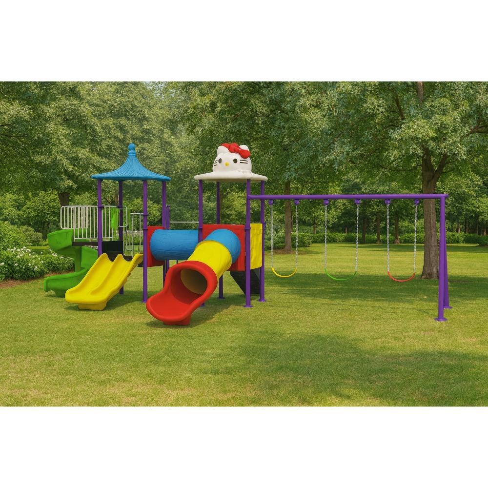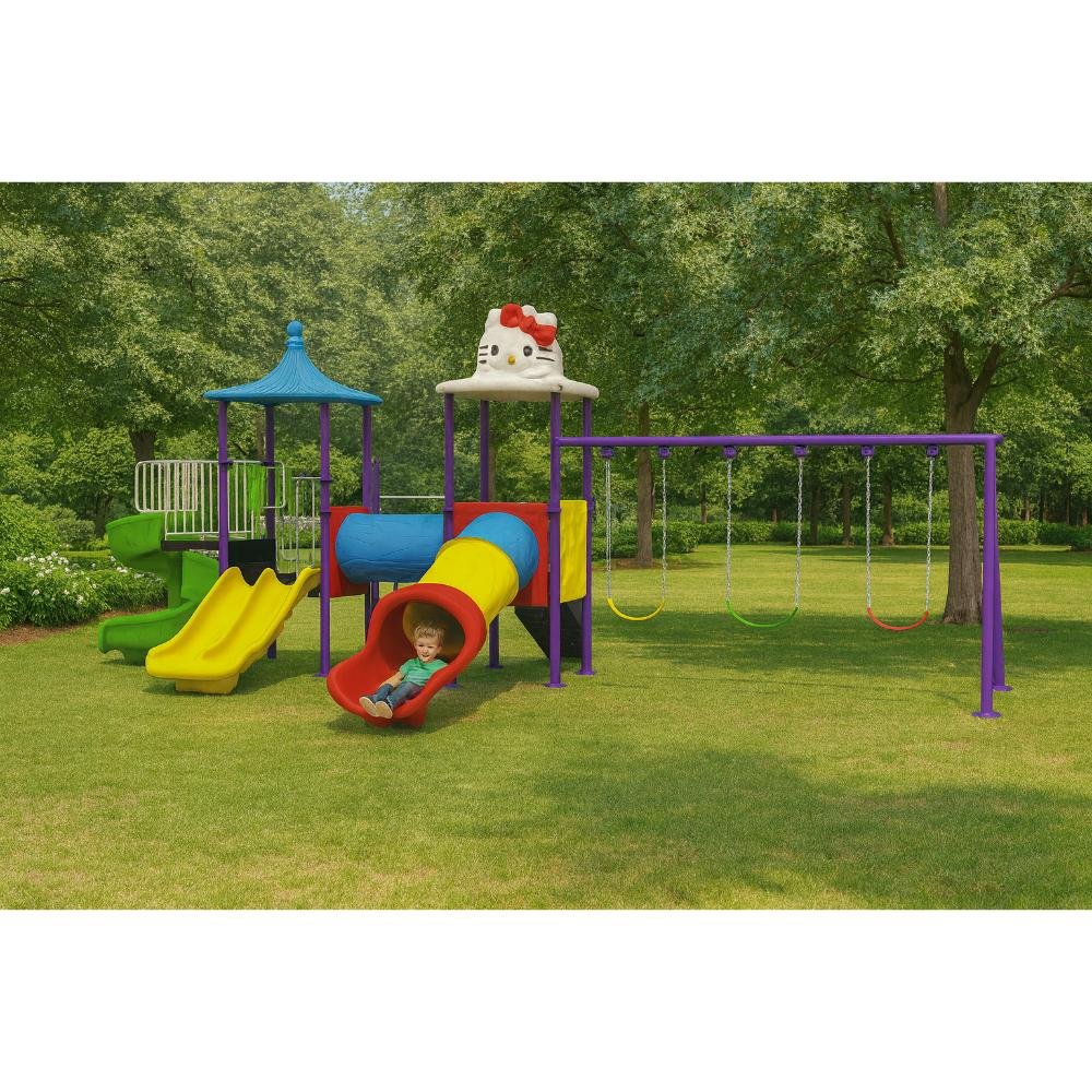 This premium MYTS playground set is designed for kids to enjoy endless hours of safe play. With dimensions of 735*520*320 cm, it provides spacious activity zones including climbing, sliding, and imaginative play. It is a centerpiece for any playground or backyard, while also being crafted with child safety as the top priority. This playset is helps children develop motor skills while having fun and bright, attractive design that keeps children engaged. Children will benefit as it built from durable materials that withstand tough weather, and parents love that it is encourages active play, teamwork, and balance. Please note There can be slight change of color or design from what is shown in picture .A wonderful choice to create joyful childhood experiences.