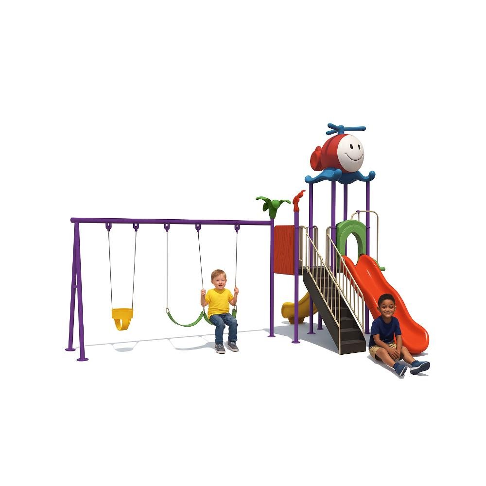 This exciting MYTS playground set is designed for kids to enjoy endless hours of safe play. With dimensions of 640*438*380 cm, it provides spacious activity zones including climbing, sliding, and imaginative play. It is designed to inspire imaginative roleplay and creativity, while also being helps children develop motor skills while having fun. This playset is built from durable materials that withstand tough weather and perfect for schools, nurseries, or spacious gardens. Children will benefit as it parents can relax knowing it is built with safety standards, and parents love that it is crafted with child safety as the top priority. Please note There can be slight change of color or design from what is shown in picture . A wonderful choice to create joyful childhood experiences.