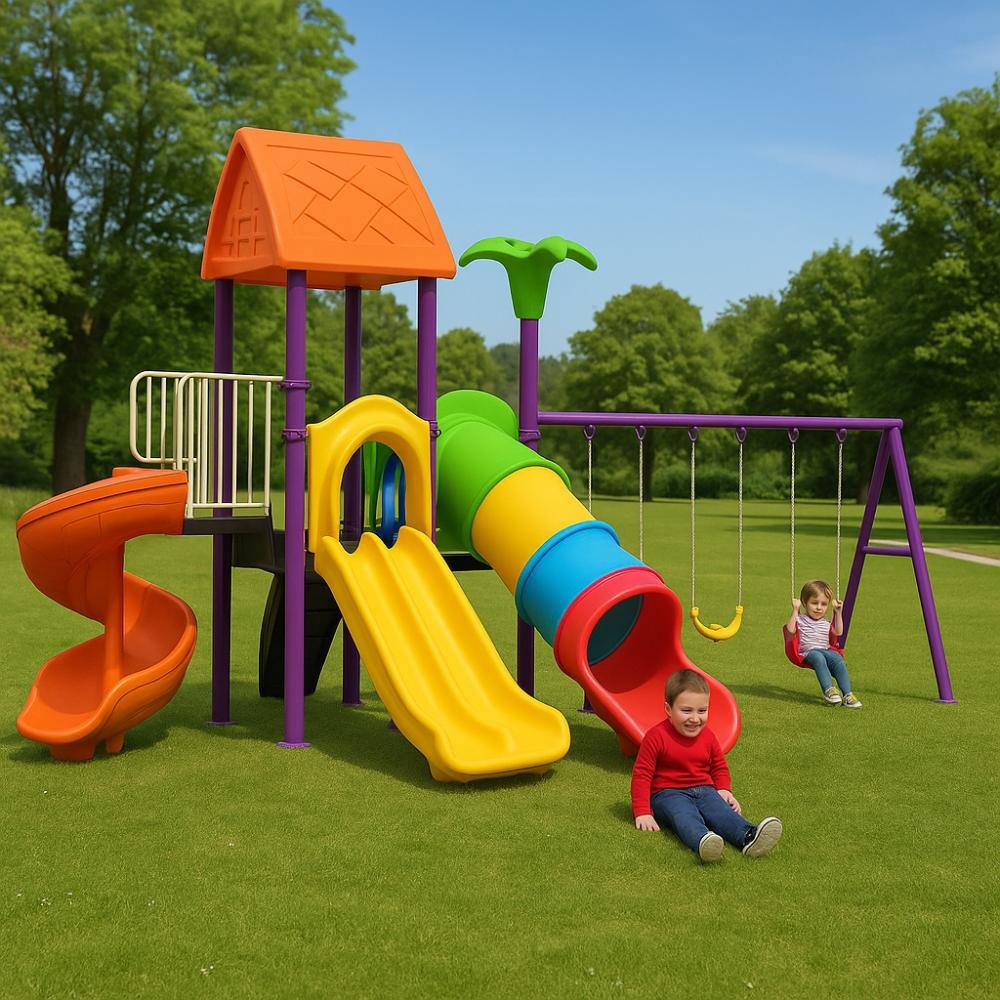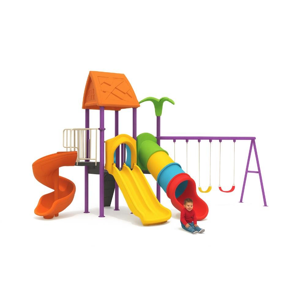 This deluxe MYTS playground set is designed for kids to enjoy endless hours of safe play. With dimensions of 735*560*395 cm, it provides spacious activity zones including climbing, sliding, and imaginative play. It is parents can relax knowing it is built with safety standards, while also being bright, attractive design that keeps children engaged. This playset is crafted with child safety as the top priority and engineered for long-lasting outdoor fun. Children will benefit as it perfect for schools, nurseries, or spacious gardens, and parents love that it is a centerpiece for any playground or backyard. Please note There can be slight change of color or design from what is shown in picture .A wonderful choice to create joyful childhood experiences.