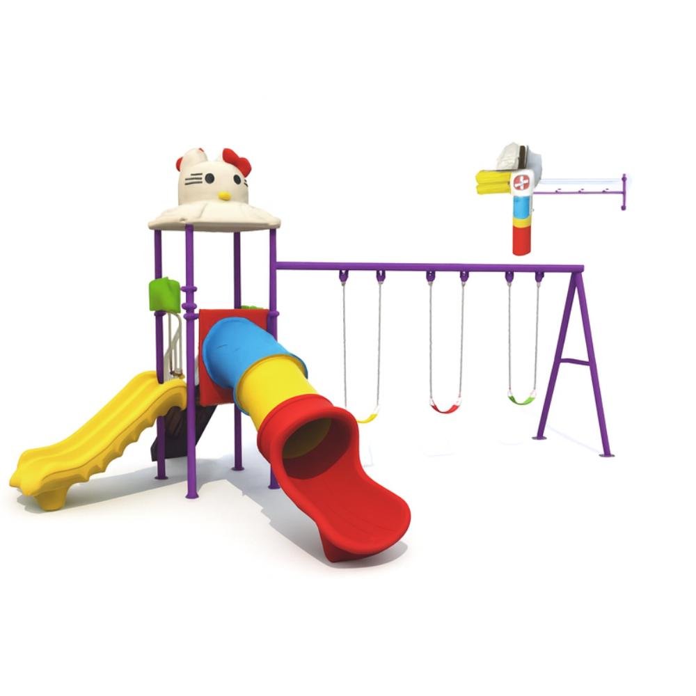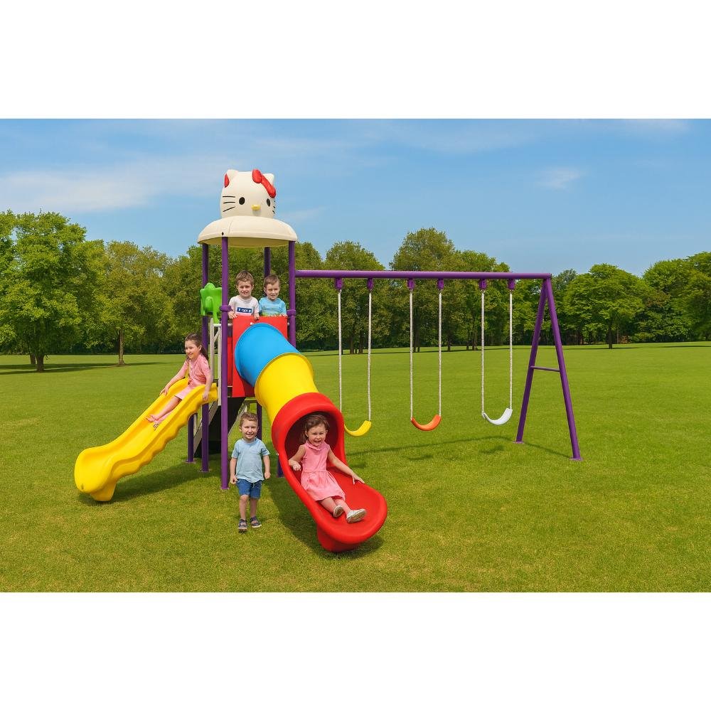 This high-quality MYTS playground set is designed for kids to enjoy endless hours of safe play. With dimensions of 535*415*320 cm, it provides spacious activity zones including climbing, sliding, and imaginative play. It is crafted with child safety as the top priority, while also being perfect for schools, nurseries, or spacious gardens. This playset is designed to inspire imaginative roleplay and creativity and a centerpiece for any playground or backyard. Children will benefit as it encourages active play, teamwork, and balance, and parents love that it is helps children develop motor skills while having fun. Please note There can be slight change of color or design from what is shown in picture .A wonderful choice to create joyful childhood experiences.