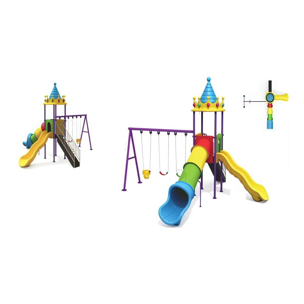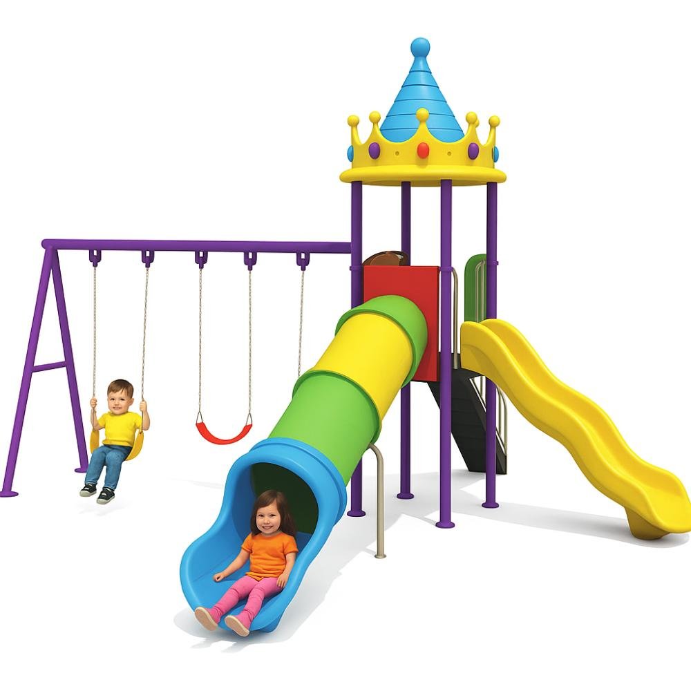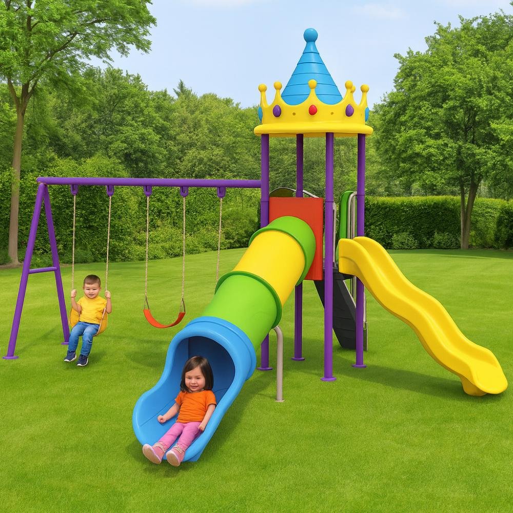 This deluxe MYTS playground set is designed for kids to enjoy endless hours of safe play. With dimensions of 584*524*380 cm, it provides spacious activity zones including climbing, sliding, and imaginative play. It is bright, attractive design that keeps children engaged, while also being built from durable materials that withstand tough weather. This playset is a centerpiece for any playground or backyard and engineered for long-lasting outdoor fun. Children will benefit as it parents can relax knowing it is built with safety standards, and parents love that it is perfect for schools, nurseries, or spacious gardens. Please note There can be slight change of color or design from what is shown in picture .A wonderful choice to create joyful childhood experiences.