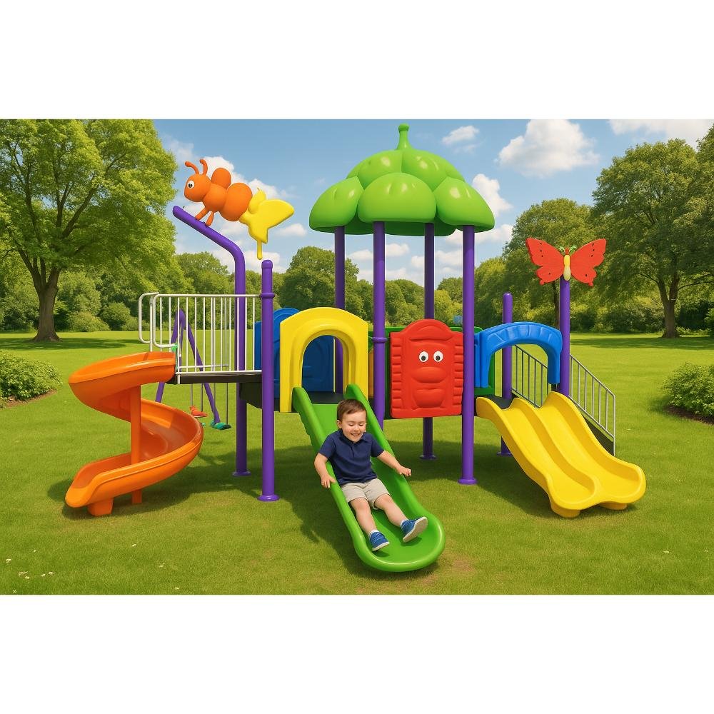 This deluxe MYTS playground set is designed for kids to enjoy endless hours of safe play. With dimensions of 560*630*350 cm, it provides spacious activity zones including climbing, sliding, and imaginative play. It is perfect for schools, nurseries, or spacious gardens, while also being parents can relax knowing it is built with safety standards. This playset is a centerpiece for any playground or backyard and built from durable materials that withstand tough weather. Children will benefit as it crafted with child safety as the top priority, and parents love that it is bright, attractive design that keeps children engaged. Please note There can be slight change of color or design from what is shown in picture . A wonderful choice to create joyful childhood experiences.